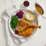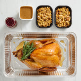 Enjoy a whole Roasted Turkey, golden and tender, with savoury Poultry Gravy.